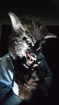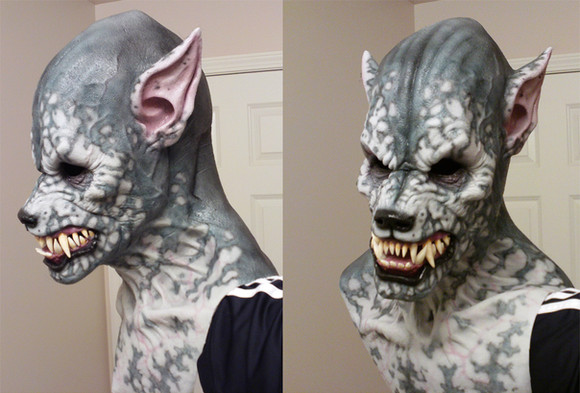 I don't know about his human mask he uses to 'tear out of' or the other stuff he has, but the werewolf looks like a Running Wolf Productions creation. [link]