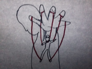 The puppet dances for its master...