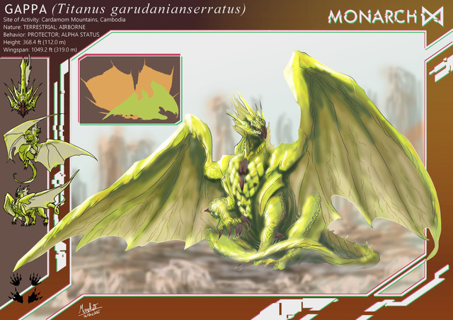 This superspecies was awakened and escaped from Outpost 56 on Isla de Mara, Mexico in 2019. After the defeat of Monster Zero, he and some of the other Titans became submissive to Godzilla, the alpha Titan, and nested in a volcano near Fiji. However recently, Rodan started to challenge the Titans actively in the adjacent archipelagos, spreading volcanic ashes and dealing great damage to the populated corners of the South Pacific. The initial report on Rodan’s action was believed to be the same reason as the major Titan uproar and the rampage that Godzilla is responsible for.