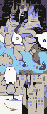 A quick little pixel art scene I just made.It could maybe eventually be an art game? Quite possibly!