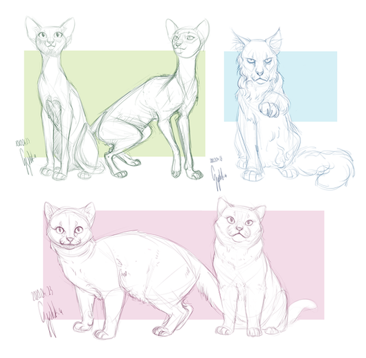 Had to refresh my memory on cat anatomy before working on a couple projects.All figures were drawn with references.