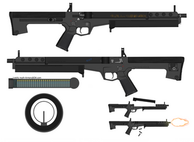 Compressed air powered assault rifle that shoots 4.5 inches 30d nail projectile I designed for Devianteist ( www.deviantart.com/devianteistβ¦)Related content