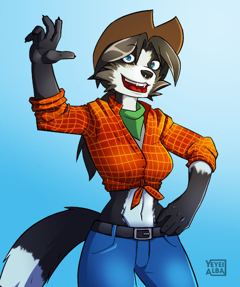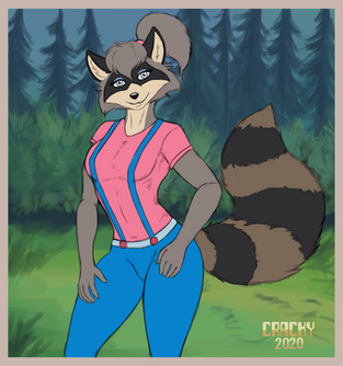 #anthro #tree #female #forest #midriff #raccoon #woods