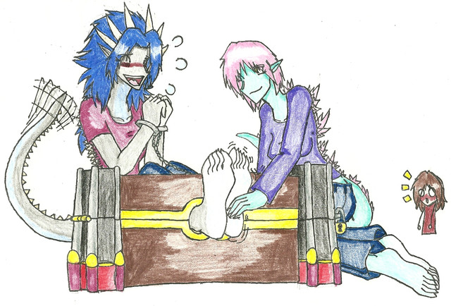 request 1/3 byso lala invented a new objetc called tickler ticker-kun to play with her sisters and friends, she decided to test with her first sister called nana tickling her feet, lala has a lot of ideas with this new object, and i guess momo will be the next girl.