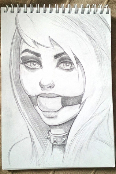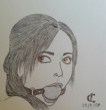 She doesn't look happy, good thing she is gagged!