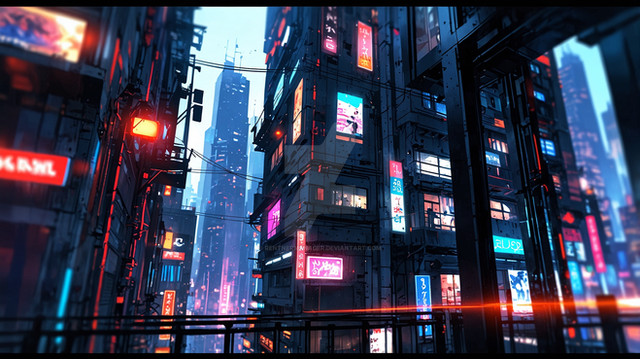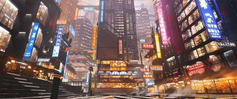 I love the lighting you use for the cyber punk artworks. Very atmospheric! The rain adds into it really nicely too and the buildings/structures are very cool. Personally, I think I would imagine a few more neon lights maybe dim somewhere off in the distance. Or just small lights that run along the bridge or whatever. At the moment the neon lights you use catch a lot of attention. In a cyber punk city I imagine them to be just part of the city sight.