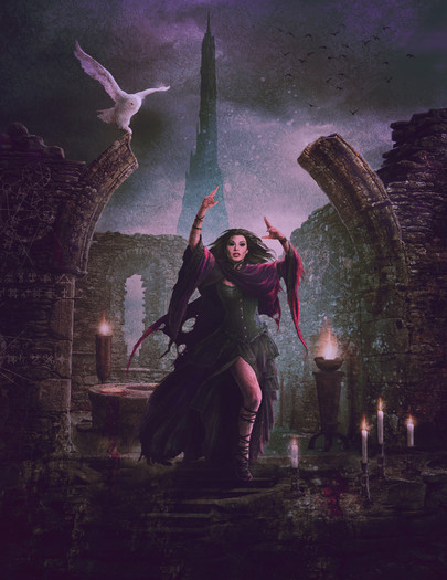 The technical work and the realism are amazing, but there is more. I see that your subject here is surrounded by gargoyles, which I suppose means that she is a protector of something. And I see she does her job very well, because of choosing such a hard to find place. I see there is a simetry between the walls, and you've put an accent on it because gargoyles are not supposed to look the same (as the legends say there are no two gargoyles alike), yet they are here. I see you subject is extremely serious about what she's doing but what about the owl? is the owl somehow a key to her? maybe a part of her personality or something. I guess the owl is representing a part of her, because you get the same feeling while looking at the owl. You've put accent on eye contact, on both the owl and her. If they're both magical and the owl is a part of her magic, then many connections make sense.