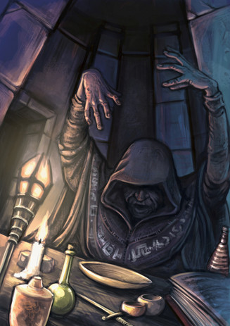 Oh, thank you, Ser, for such a long and detailed comment (it took me time to read and understand it)! Yes, I did focus on the eyes of the witch, and supposed to make an owl as a her continuation (I could not figure out where to put the owl... at first,I wanted an owl to sit on her shoulder, but she (the owl), clearly, did not fit ... then I thought place the owl in whithes hand,but the position of the witches left hand , which I drew, looked like ,an owl without, openly. So I think, without the owl woman could focus more on the ceremony ...