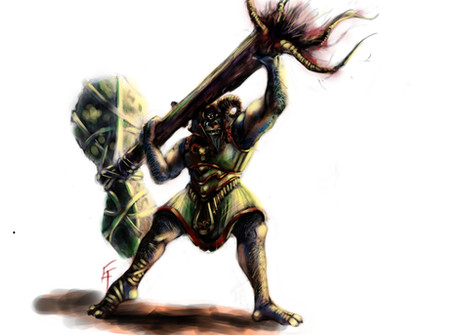 Decided that my guardian should fight my janitor for his second test. It was really fun playing with light.Size: 24" x 43"