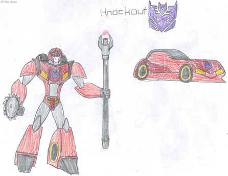 I believe Knockout here is the first Trasnformers character I've been introduced to since Transformers Prime. And I've had some time to draw him carefully while paying homage to the Prime Version by giving him some accessories that were on Prime such as his staff and his circular saw hand to "surgically" remove anything while in operation med rooms or in battle. He's still one of my favorite characters, even if anyone doesn't like him, I still appreciate him for what he is, since I've done some very close studying about the character more.