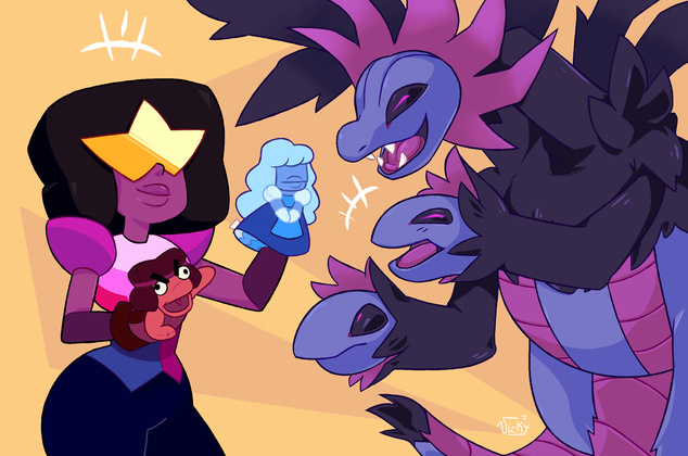 #pearl #su #amethyst #crossover #fanart #pokemon #sableye #stevenuniverse