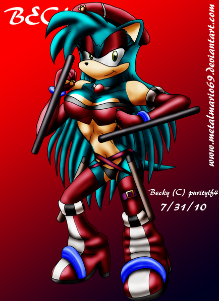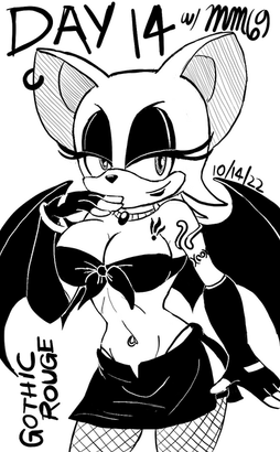 Using my design I made up on the first time I drew Rouge, I added in the fishnet to upgrade the design from the original one. The format is still the same. Same font design same diagonal gradual layer, same pose, and same size. Nothing more to say about it because there's more information behind it. So, enjoy the new improved design!Orignal Design [link]