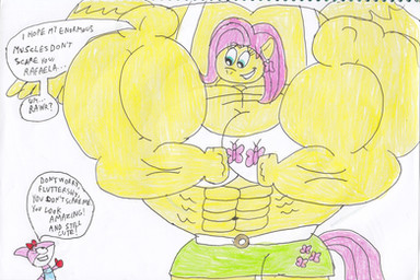 #flex #fluttershy #hero #huge #mlp #muscle #pecs #pony #super #saddlery #musclegirl #muscular #mylittlepony #pegasus