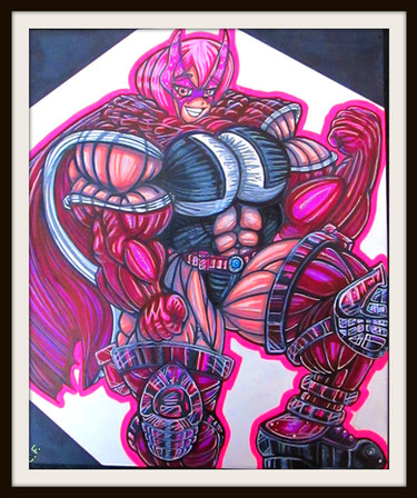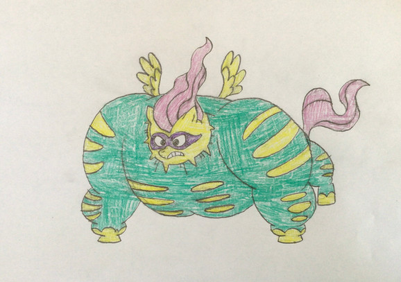 Fluttershy as Saddle Rager flexing her pecs!I drew her anthropomorphic and drew her costume in the same vein as comic books heroes, in which the costume look painted on the character and he or she looks naked without being so. I really like how this pic came out! She looks so massive and hot looking, in my opinion! Her pecs look like they are about to burst out!