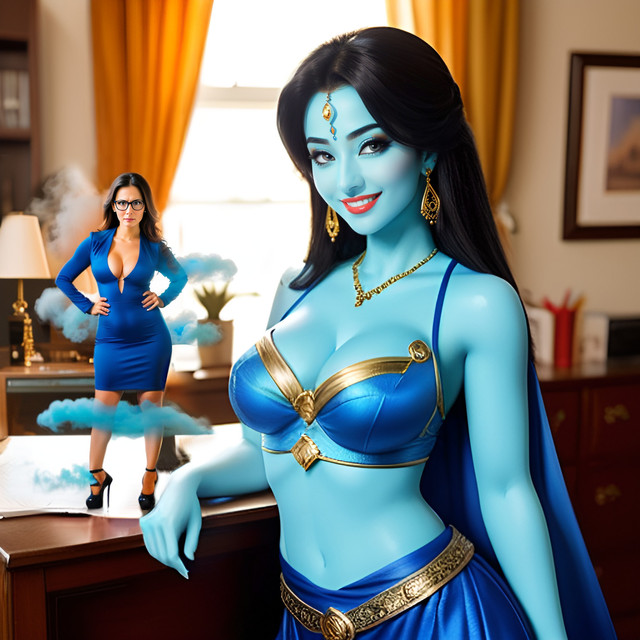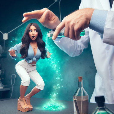 The change was instant. Marisa now stood a little over seven inches tall and was transported to the top of her desk. She couldn't move and was dressed in a new, plastic outfit.That was't makeup... that woman was actually a blue-skinned genie! Still, this had to be a weird dream. People just don't turn into dolls like this!