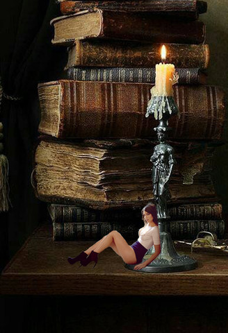 She looked about, near her was a book I had set upon some papers.