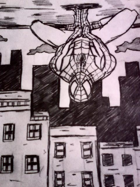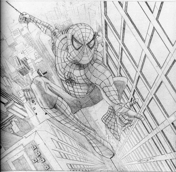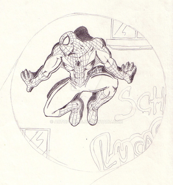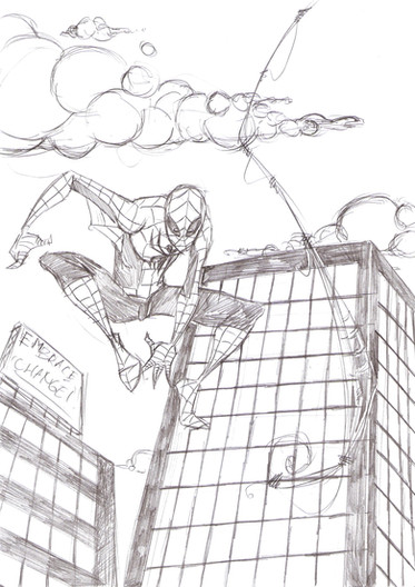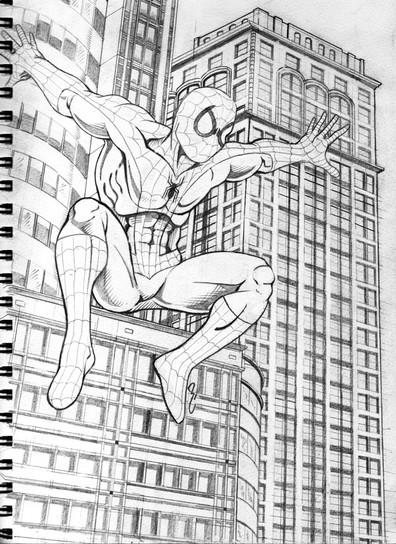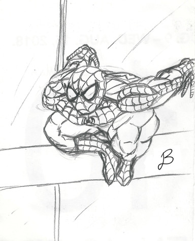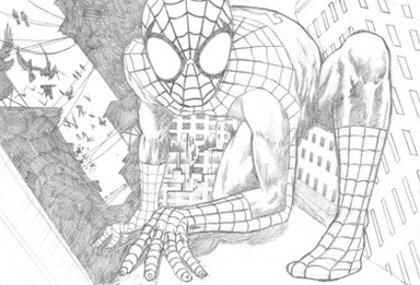 Slightly more rendered version of the Spider-Man doodle I did on this page: [link]A friend/mentor suggested I do this because he thought it would look good as a piece, even though it's small.