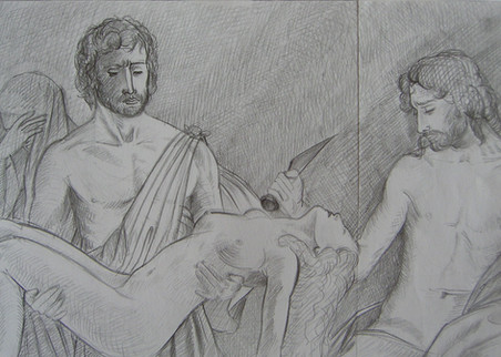 I was looking for a picture of people mourning or lamenting for a project in school. I started doing rough sketches of what I want the actual piece to look like as well as a few studies.This was drawn from; [link]