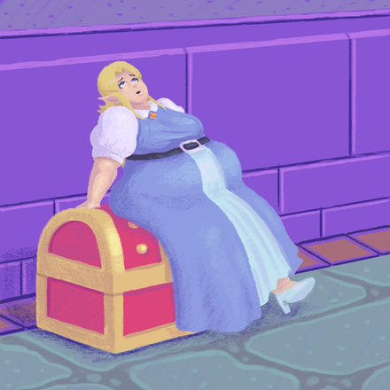 My vivacious figure is a mark of my pride and the proven era of prosperity brought on through the unity of my kingdom. The wrinkles on the food vendors face grow further outward with my visits to devour their flaky pastries and engorged fruits. I find myself having to little to say to the figures of our royal fold given the light never leaves the halls of the moonlit ballrooms. The warm layer of my belly enveloping the hanging meat of my legs pressed the silhouette of my dress outward. It grants an authoritative sway to my stride that, among other things, captivates my suitors in a hypnotic state.
