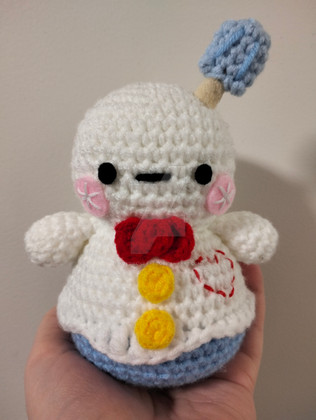 Milkshake stands about 6" tall. Made with KnitPicks Brava worsted yarn and DMC embroidery thread.