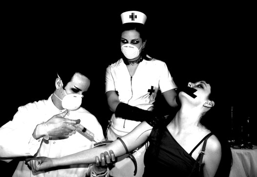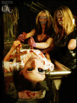 I think this is as powerful a picture as I've ever seen in the victim-of-science/medical experimentation fetish genre. (People taking the subject matter as anything but fetish traum-logic, I think, are missing the point entirely...) The model's expression, the pose, and the art direction are unforgiving and ferocious, and the technical 'finish' of the image is cinematic and absolutely inspired. You must have seen HIGH TENSION, FRONTIER(S), and especially MARTYRS.