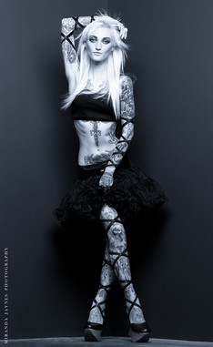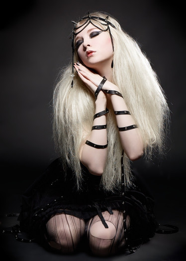 Love this image. Really great use of flowing material and hair, which subtly matches the ribbon-like font of the model's ink.