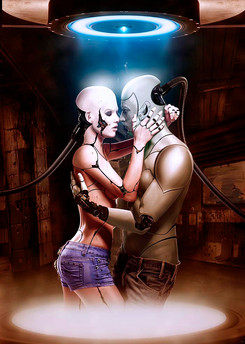 Love the use of value in this piece and the way she is sitting on the android machines lap. It makes me wonder, is she building him? Was he someone special to her before?