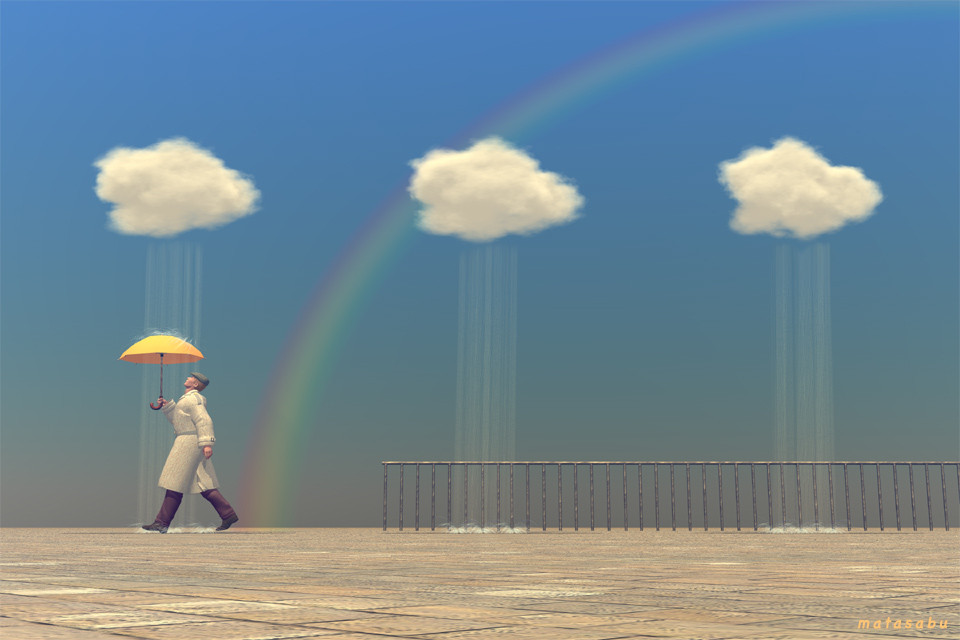 That's got to be the most optimistic-looking image I've seen for a long time. I like the surrealistic style you have here, especially when it's a first for me to see someone do something different with 3D art. The clouds could use a little varying up in size and shape and maybe even some water puddles could be pooling up on the ground heheh. But I guess that's a lil too much work if you were to put that into 3D
