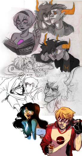 At first it was a different idea with the first panel, but I didn't like it, so i changed idea and added the second panel with karkat, kanaya and terezi! I did it always with grey tones technique. Gh, i hope to improve soon--