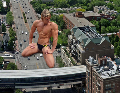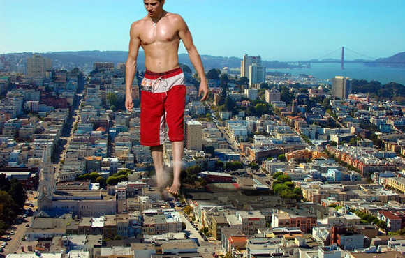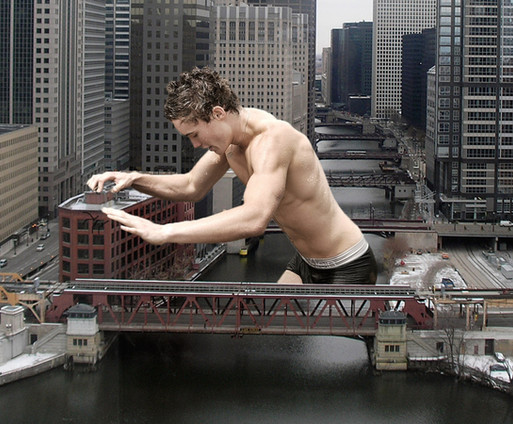 He should take off his underwear and walk around naked. And if the people try to run away he can smash then or EAT Β them.Β
