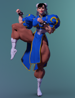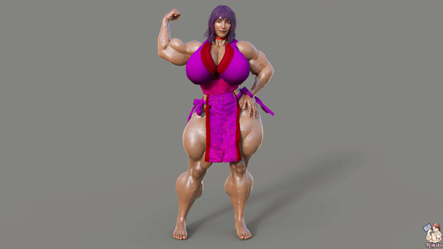 Yay, she's finally gotten her 2nd muscle pic. Her swimsuit with a cape looks cool and I've never seen something like that. That also goes well with how big her legs are compared to other parts of her body, it's like she's trying to hide other parts so that we could admire her massive quads and calves, and they look mindblowing.