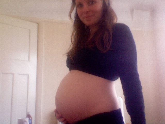 "Hi guys, just here with a quick bumpdate.Something odd is happening. I started showing really early, and as you can here I'm kinda huge. I've already had people asking me when I'm due-and I'm only nine weeks in!