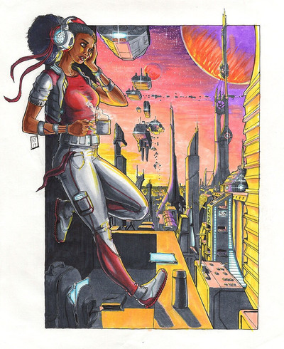 #space #atmosphere #bot #cyberpunk #girl #landscape #planet #punk #sciencefiction #sciencefictionfantasy #scifi #scificharacter #skyscrapers #spaceopera