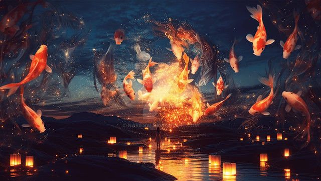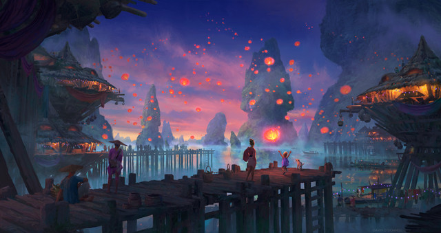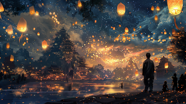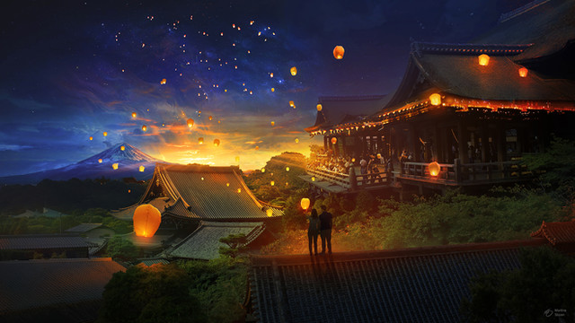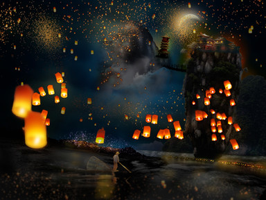 #china #festive #fireflies #japan #kids #lantern #scenery #village #photobash #landscape #mountains #photomanipulation