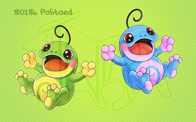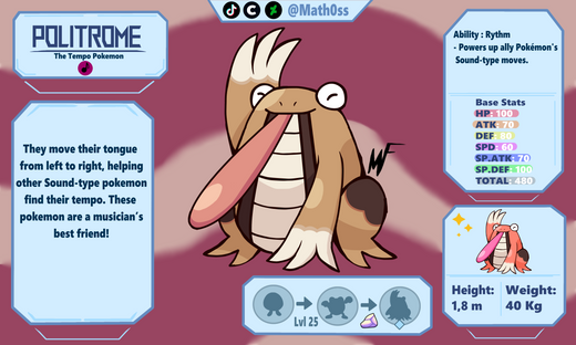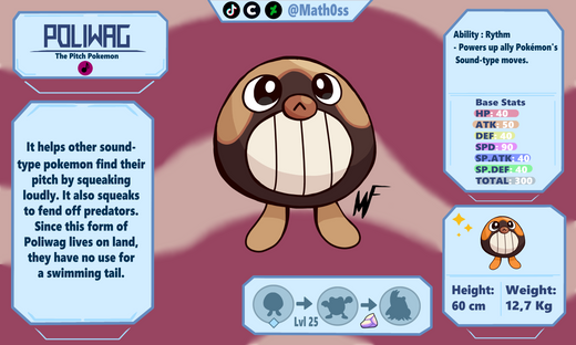 Poliwag's evolution, this one based on tuners. It hums with other Sound-type pokemon to help themtune. It also points the patterns on its