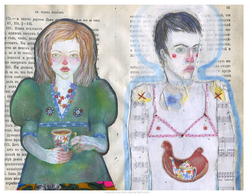 I dig the sense that she is actually sitting on the ripped piece of paper. I really like this!