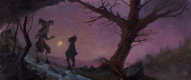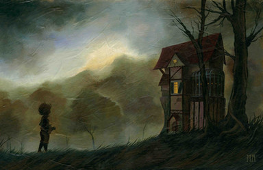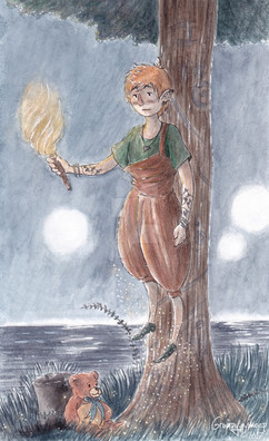 I find your artwork sweet, evocative, alive with texture and full of mystery and suspense. Who is this shadowy child that shows up in some illustrations, always Peter Pan or just one of the lost boys maybe? And what is that creature beneath the trunk-bridge? I thought this illustration was cute until I saw that creature, then it felt like more was going on. Eerie yet full of wonder and magic. (If it's mostly references to stuff from Peter Pan, pardon my ignorance since I haven't read the book )