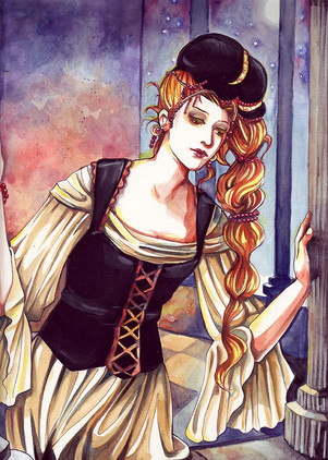 Hello everybody !! Maybe this young princess feels intimidated by her future crowning ? Or maybe she feels intimidated by her future lover ? What do you think about it ? This sketch is a watercolor.Related content