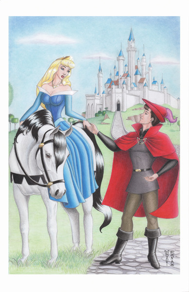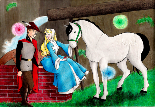 My choice was obvious. My favorite one is Princess Aurora, but I couldn't found out what she should to: picking berries? Learning to sew...?