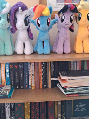 My modest collection of MLP stuff, mostly plushies and tee shirts.Related content