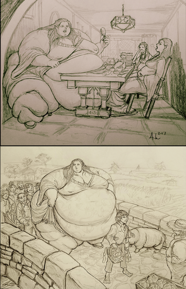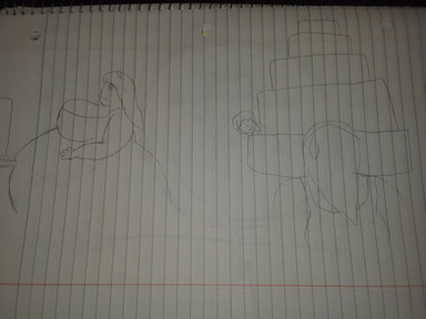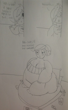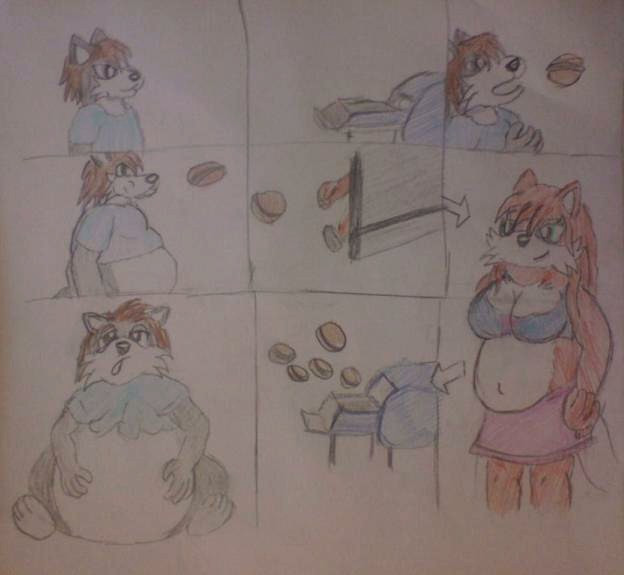 A sketch I made to help me visualize Greta's growth throughout chapters 8-10. When I was done I figured "eh, might as well post it." So, yeah, here you go. I'll also be posting it to DeviantArt, but not until after the corresponding chapters are out.Also, it didn't look like this when I decided "I should post this". I had to add some extra detail and had to smooth out the lines, just to make it more presentable than just an everyday doodle. But I also wasn't willing to put in the effort to make this a real ass art project. If for no other reason than it was drawn on the back of a used worksheet. So, yeah, that's why Hank is only visible in one of the 3 photos, and also why I didn't draw any food other than a hotdog. Which, yes, I know, is being eaten for breakfast.