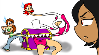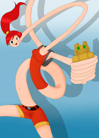 Crossover Concept in colorsJust before Unusually Flexible Girl can run off with Josie's personal treasures (while leaving Josie to deal with knots, and not the hair kind), Josie's maid Linda offers the guest some juicy berries. Those berries look awfully close to the ones that gave Josie power her rubber body a while back (from a rare plant Josie discovered a while back)