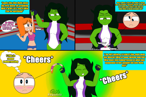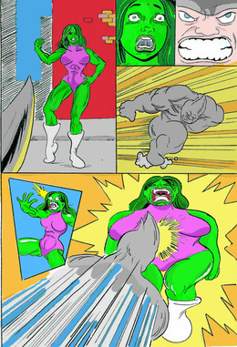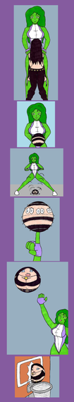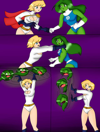 she hulk is back to normal (and some pain in her body) and time to revenge,ultra girl look the bell to see her is the winner and wait a second, she hulk use her secret weapon, his smelly feet and knocks with its smell of ultra woman.
