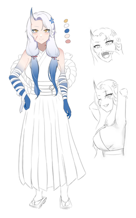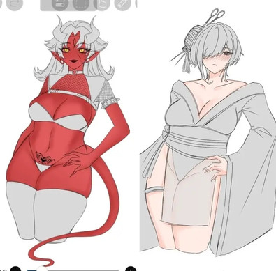 I designed this character named Iwa around 5 months ago but I had a lot of trouble finding myself confortable drawing her and the reason was because I was not following my original ideas to begin with, the left picture is the one I first drew of her and the second one is her new design with a tail and scaly and pointy horns, she is much chubbier as I intended in the first place and she has a big and chuncky tail.I love the way she looks now and I feel very confident and confortable whenever I draw her and I can finally say that all my main four Oc's are settled and made just like I originally planned them to be.
