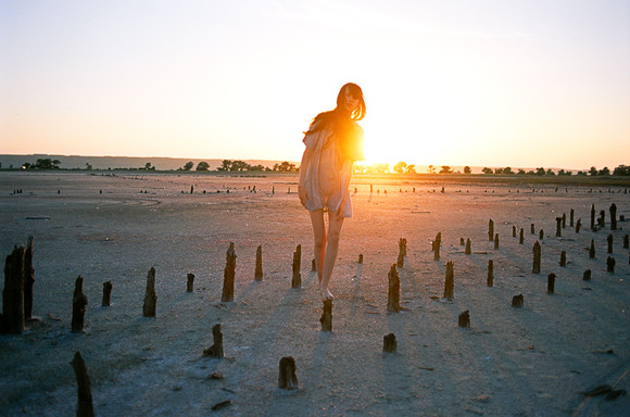 Belle composition encore, les poteaux qui partent vers l'horizon avec le model dans l'axe c'est nickel, en plus les tons un peu vieillis donne du charme à la photo, comme sur les vieux films couleurs.