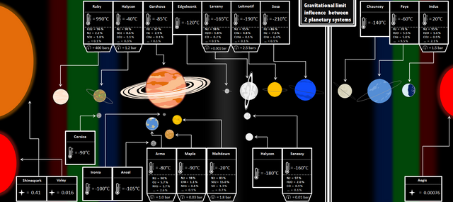 It's simplified representation of Solar System, it's also an upgrade with more information.You have 8 planets with: Names, temperature (degree Celcius), atmosphere composition and atmospheric pressure