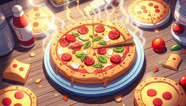 #anime #animefood #cartoon #cheesy #cute #delicious #delivery #digitalart #digitalpainting #fastfood #foodart #illustration #italian #kawaii #mushrooms #onions #overheadview #pepperoni #peppers #pizza #saucy #slices #takeout #tasty #topview #yum #appetizing #foodillustration #flatlay #meltycheese