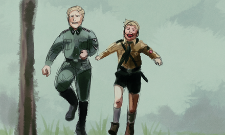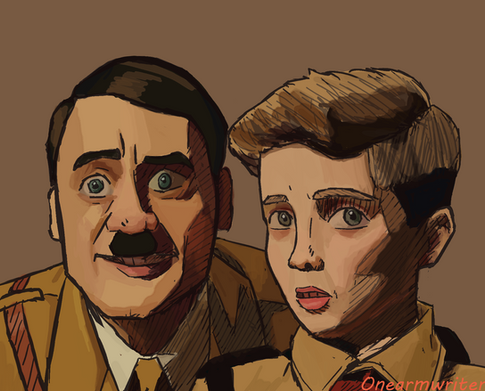 Welcome to another episode of me drawing from screenshots of movies I haven't seen yet, but want to. This is a scene from the movie Jojo Rabbit. I spent all day on this because I wanted it to look nice. I'm still experimenting with my style and trying to find things I like.