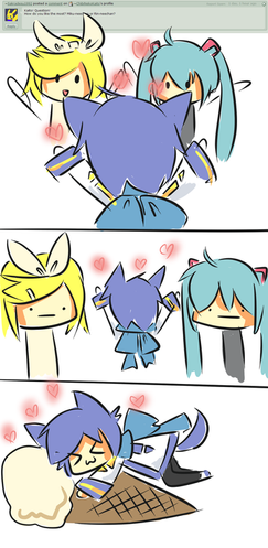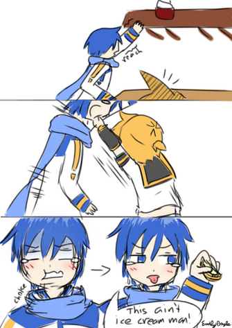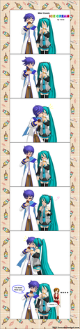 I love the expressions they are brought across clearly and the lines are very clean, I love how Kaito's reaction to sweet miku is droppin' his ice cream on panel four,this is totally darlin' keep up the good work
