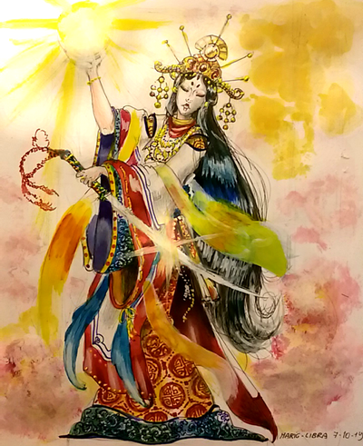 Would you resist her charm?Ink and watercolor on paper